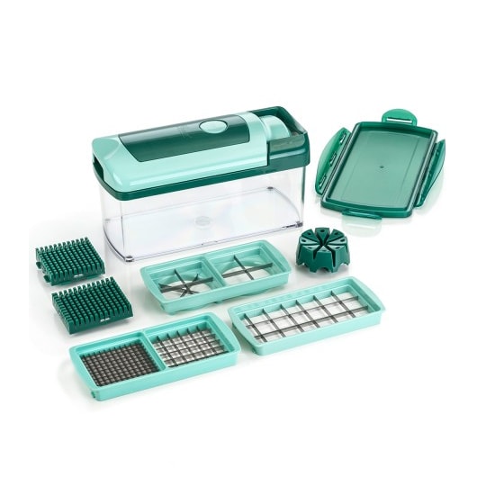 Фрукты, овощи, мясо, рыба, зелень, яйца, сыр - Nicer Dicer Fusion по плечу любые продукты! Возможно, раньше вы слышали многое о «старших братьях» этой модели. Новое устройство заполучило ряд достоинств и избавилось от недостатков, которые описывали обладательницы Nicer Dicer. Разработчики учли каждое требование представительниц прекрасного пола, проводящих на кухне слишком много времени, и выпустили просто потрясающее устройство!