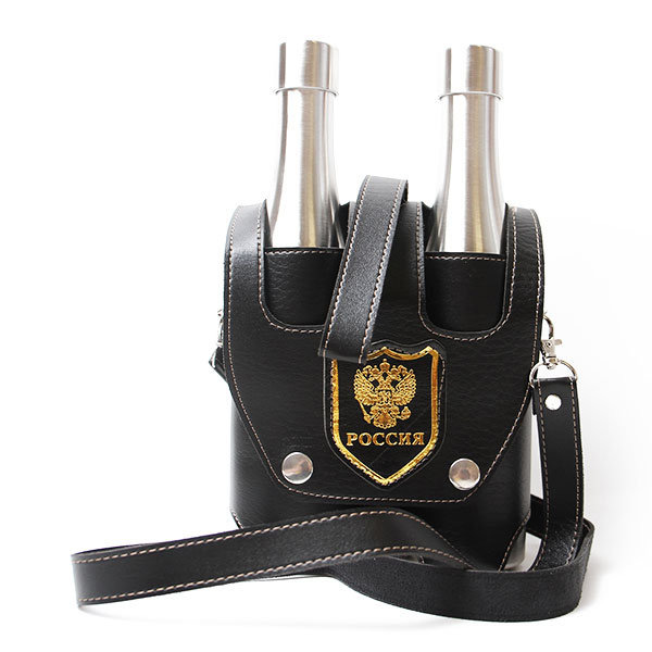 Бутылки украшены гербом Российской Федерации и надписью "Россия"