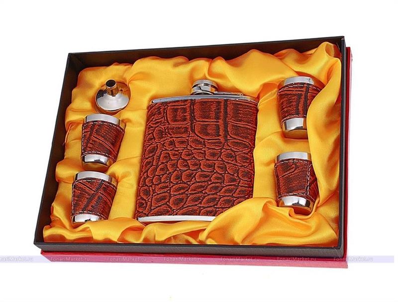 Подарочный набор объединяет стильную практичную фляжку, воронку и четыре качественные рюмки. Набор производится лишь из качественных материалов, стойких к износу и повреждениям. Красивый подарочный бокс делает набор универсальным сувениром своим близким на каждом празднике.