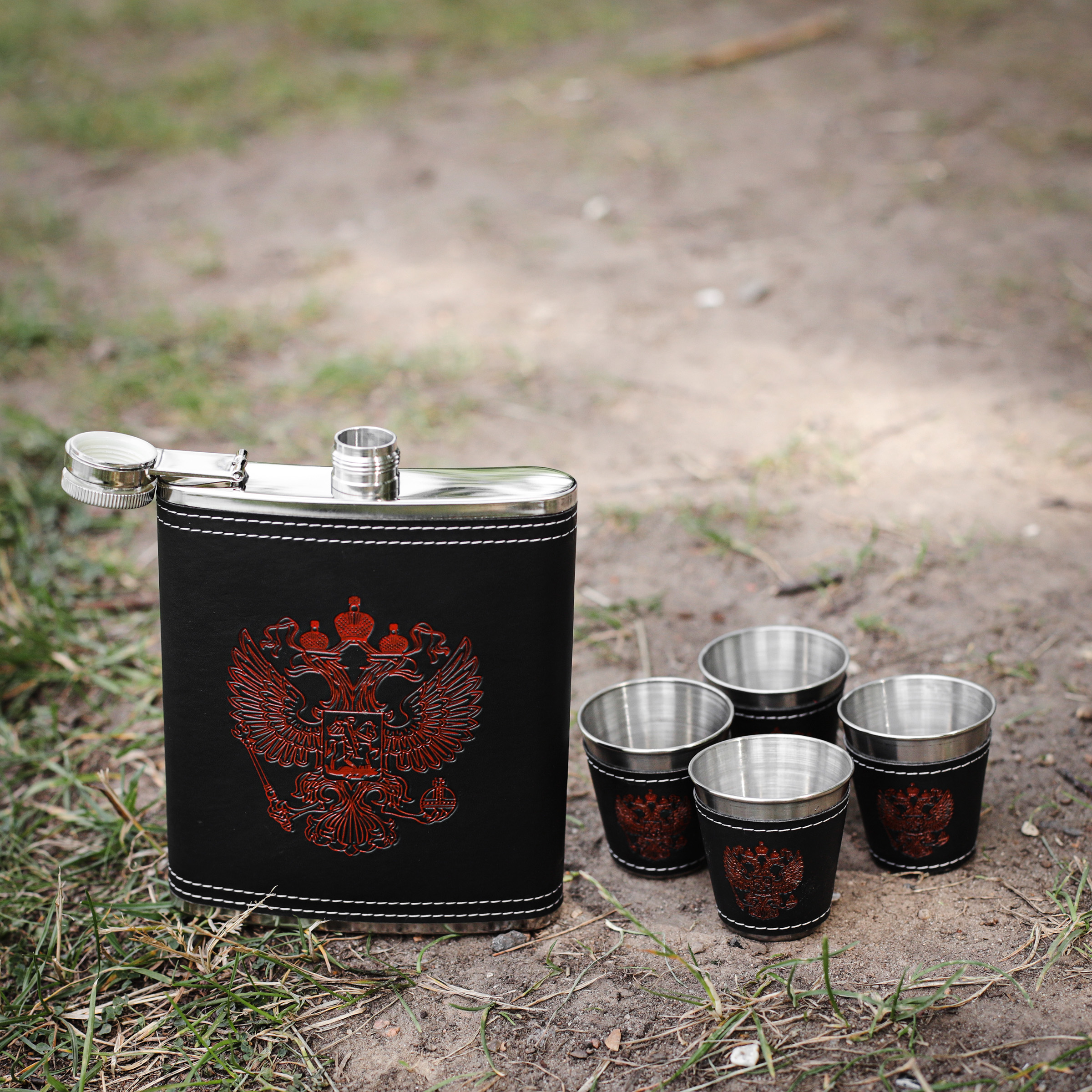 Подарочный набор: фляжка 18 oz, 4 рюмки, воронка
