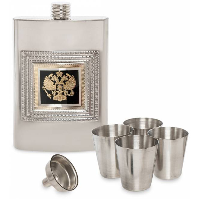 Подарочный набор фляжка 220 мл со стопками Герб России