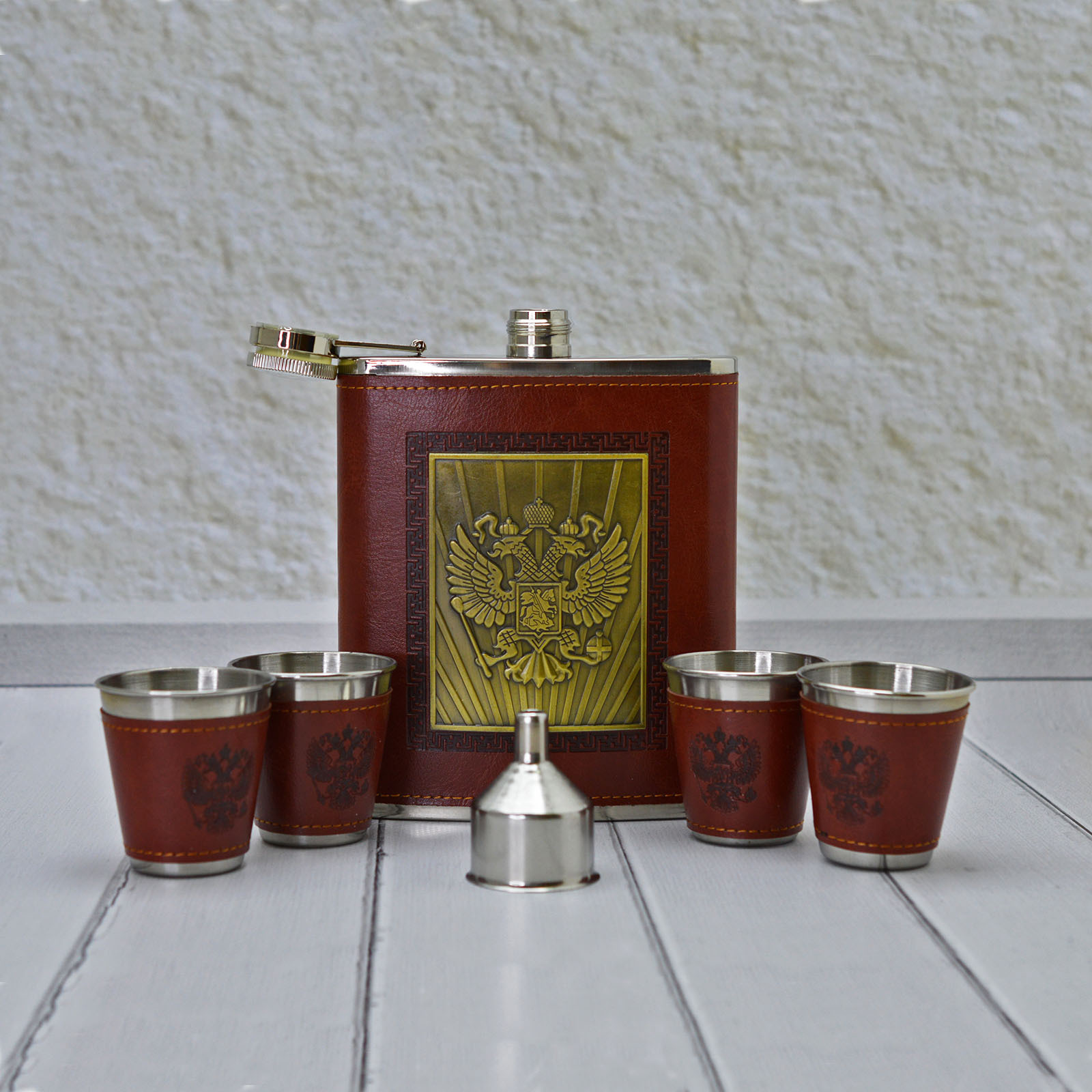 Подарочный набор Фляга 280мл., 4 стопки и воронка станет отличным подарком любому мужчине.