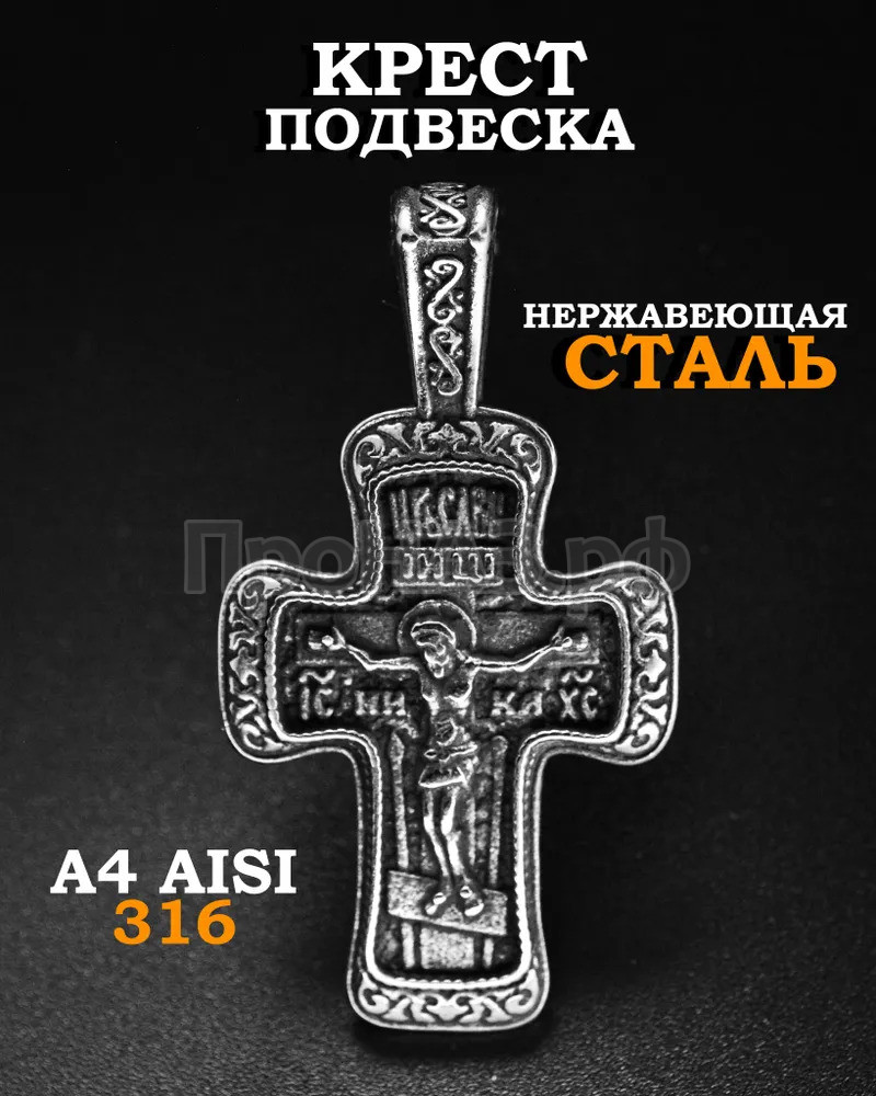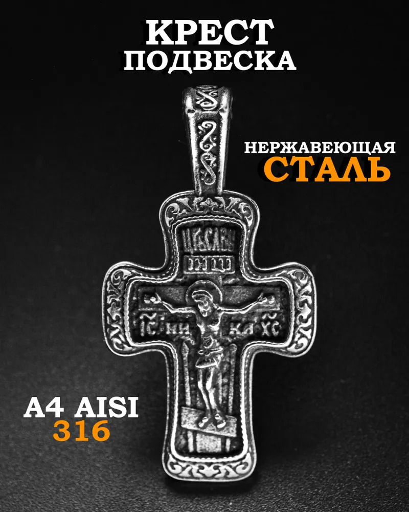 На лицевой стороне креста – изображение Распятия Господа Иисуса Христа, а на обороте - короткая молитва, обращенная к Господу: "Да воскреснет Бог". Это великолепное украшение прекрасно дополнит Ваш образ и станет великолепным символом Вашей веры. Подвеска оберегает, помогает, вселяет уверенность.