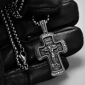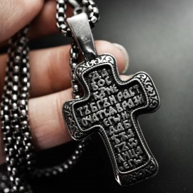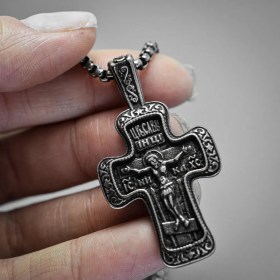 - Форма кулона: Крест Распятие Христово; молитва с обратной стороны креста;