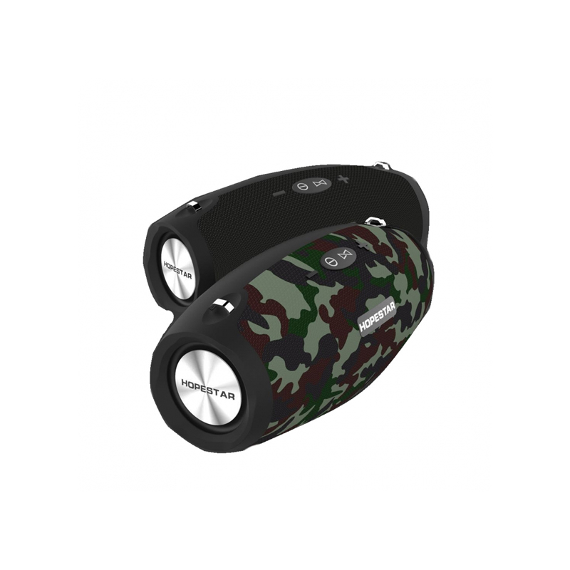 Блютуз колонка Hopestar H25 - портативная влагозащищенная колонка со встроенным аккумулятором, воспроизводит по Bluetooth, с USB флешек, с карт памяти, с AUX входа, есть FM радио, имеет встроенный микрофон, может использоваться в качестве powerbank для зарядки других устройств по USB. Мощность 34 Вт.