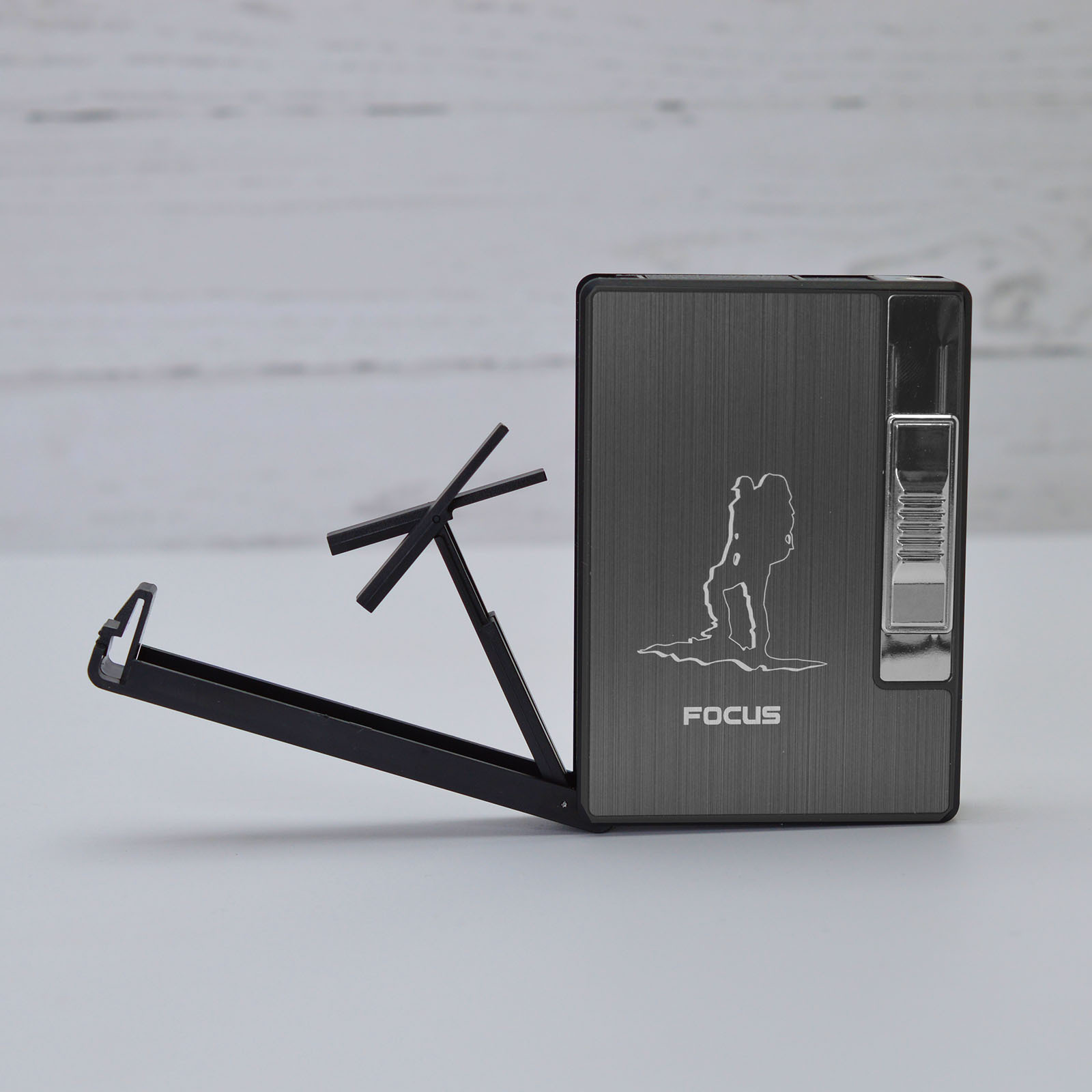 Автоматический портсигар с заменяемой зажигалкой.
