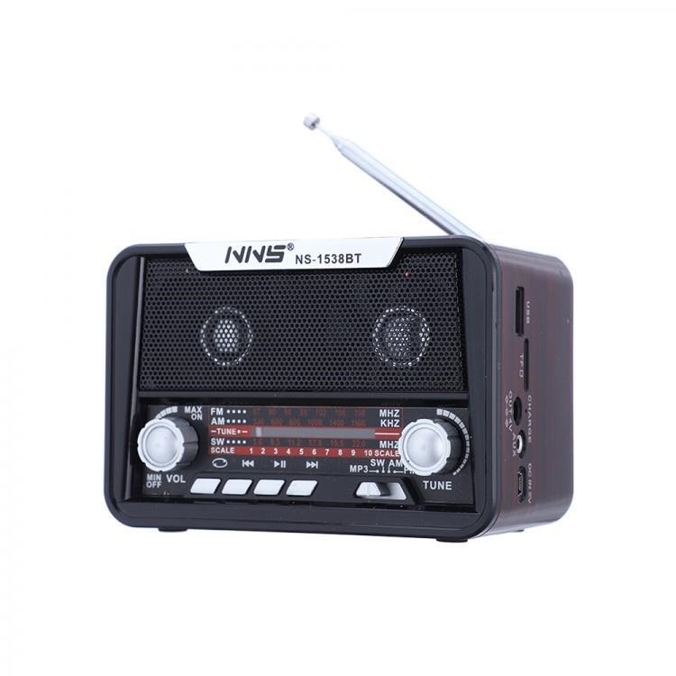 Радиоприемник NNS NS-1538BT. Прежде всего это качественный и очень чувствительный тюнер. Даже в условиях плохого приема удалось поймать несколько станций. Благодаря хорошей избирательной способности радиоприемник хорошо держит станции , волна не плавает и не уходит. Конечно кроме качественного приема нельзя не обратить внимание на классический ретро дизайн аппарата. Внешность однозначно притягивает, поэтому такой вариант вполне подойдет и для не дорогого подарка. Кроме функции радиоприемника есть MP3 плеер который считывает информацию с карт памяти и флешек , а так же имеет функцию bluetooth. Для современного приемника очень не плохо...Одним словом приемник для людей любящих классику в стиле ретро.