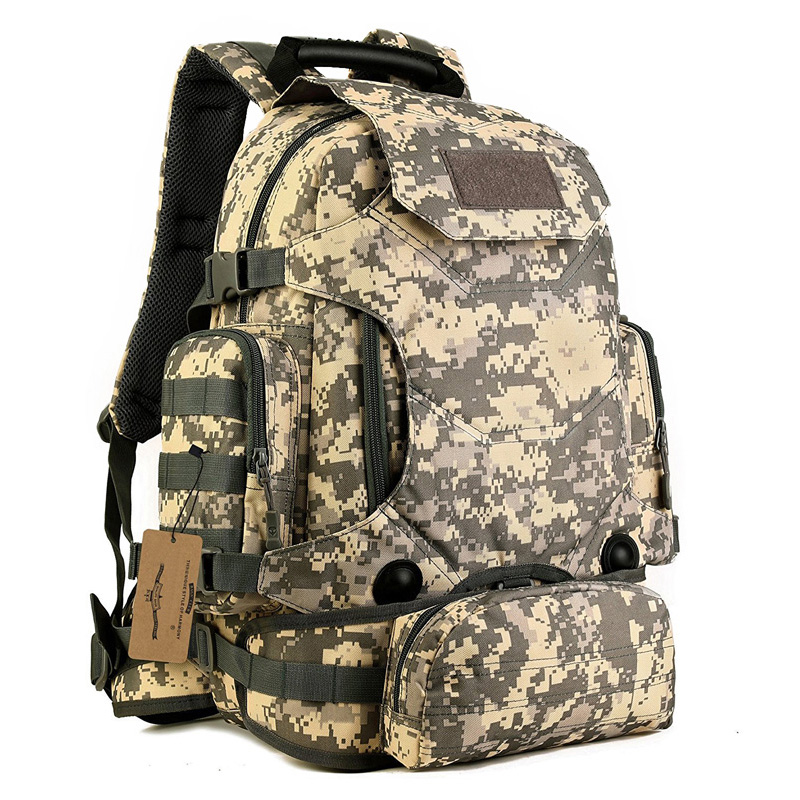 • Особенности строения: Спереди на рюкзаке - защитная накладка, которая крепится на карабины, и застегивается сверху на клапан, с нашитой на него ворсовой тканью для шевронов и т.д. Под накладкой находится отделение 35х25 см с двумя карманами 14х14 см. Спереди на уровне пояса у рюкзака есть пристегной карман 22х10х15 см с нашитыми стропами. По бокам рюкзака- два кармана 20х4х11 см. Основное большое отделение размером 43х35х15 см, в нем карман 25х30 см. Спинка рюкзака и лямки, со стороны прилегающей к телу, прошиты поролоном и тканью-сеткой, которые обеспечат максимальный комфорт. На лямках есть стропы для навешивания дополнительных аксессуаров. Для переноски рюкзака в одной руке есть ручка с прорезиненным покрытием.