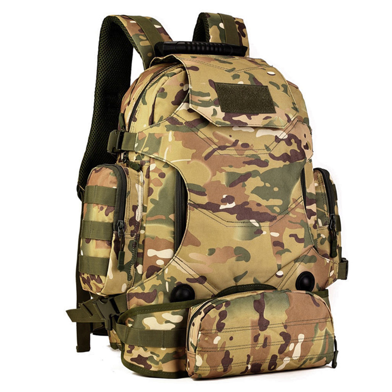 • Особенности строения: Спереди на рюкзаке - защитная накладка, которая крепится на карабины, и застегивается сверху на клапан, с нашитой на него ворсовой тканью для шевронов и т.д. Под накладкой находится отделение 35х25 см с двумя карманами 14х14 см. Спереди на уровне пояса у рюкзака есть пристегной карман 22х10х15 см с нашитыми стропами. По бокам рюкзака- два кармана 20х4х11 см. Основное большое отделение размером 43х35х15 см, в нем карман 25х30 см. Спинка рюкзака и лямки, со стороны прилегающей к телу, прошиты поролоном и тканью-сеткой, которые обеспечат максимальный комфорт. На лямках есть стропы для навешивания дополнительных аксессуаров. Для переноски рюкзака в одной руке есть ручка с прорезиненным покрытием.