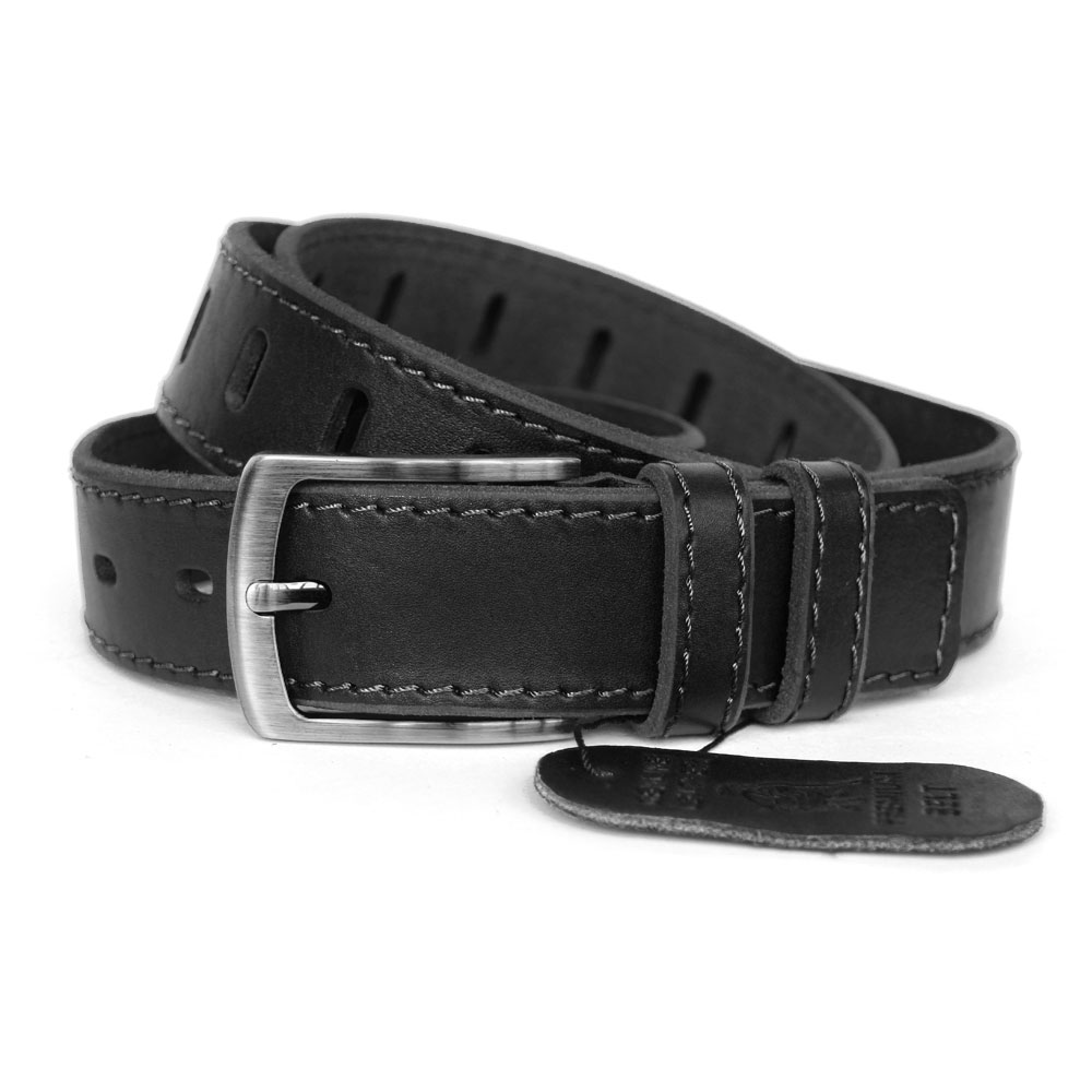 Ремень кожаный однослойный. Прекрасно держит форму и не теряет внешний вид. Сделан из плотной кожи аргентинского буйвола. Частично прошит черной вощеной нитью. Пряжка никелевая глянцевая.