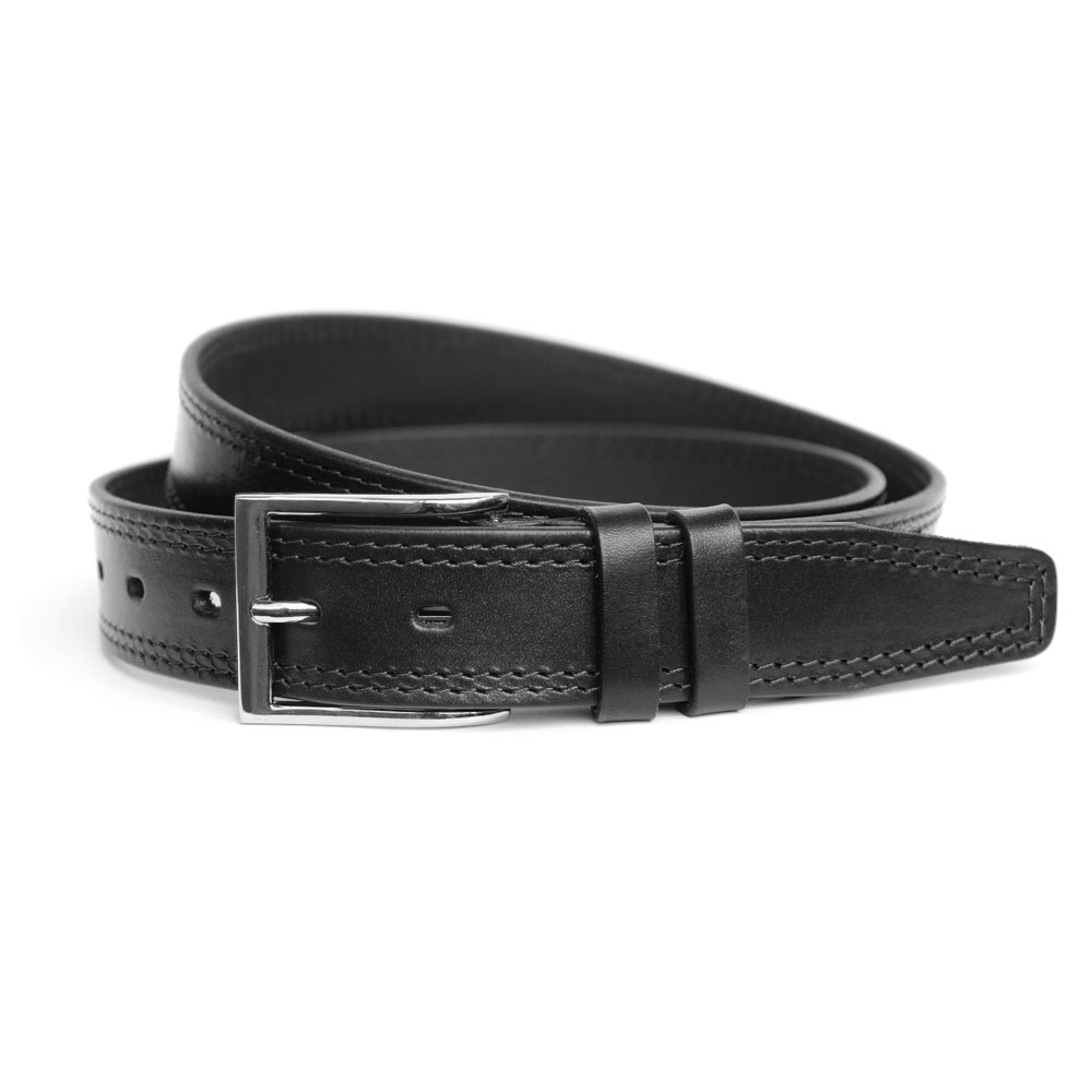 Ремень кожаный однослойный. Прекрасно держит форму и не теряет внешний вид. Сделан из плотной кожи аргентинского буйвола. Частично прошит черной вощеной нитью. Пряжка никелевая глянцевая.