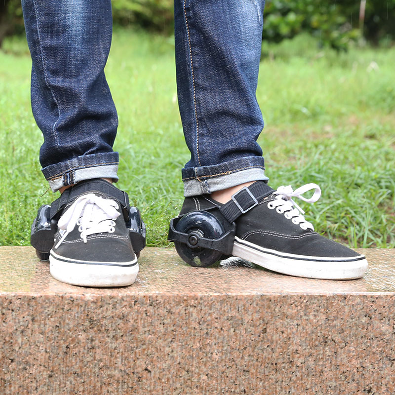 Ролики на пятку одеваются на любую повседневную обувь, в них легко перемещаться по улице, можно, не снимая, зайти в общественный транспорт или магазин. Колеса выполнены из высококачественного пластика, в них встроены яркие разноцветные светодиоды, работающие от энергии движения. Ролики подходят для детей от 5 лет, регулируются по ширине обуви, фиксируются регулируемым ремнем и имеют прочную конструкцию.
