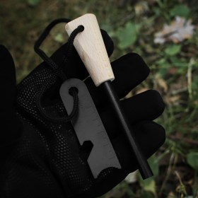 ► Небольшой мультитул на прочном шнуре - представляет собой кресало, открывалку для бутылок, линейку с разметкой на 5 см и гаечный ключ 7-8 мм.