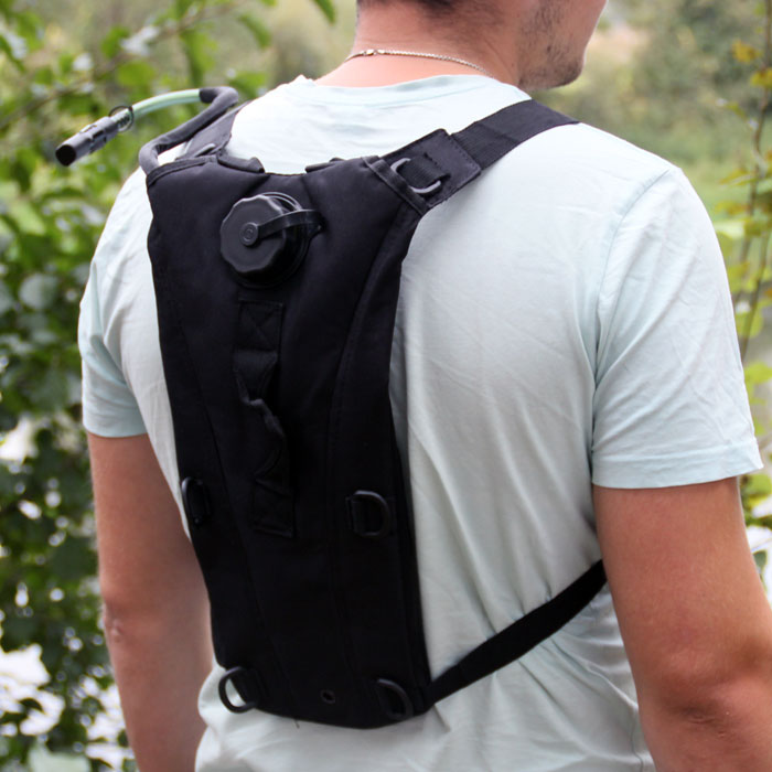 Питьевая система гидратор представляет собой достаточно плотный кожух в форме небольшого рюкзака, с вставленной внутрь емкостью для воды.