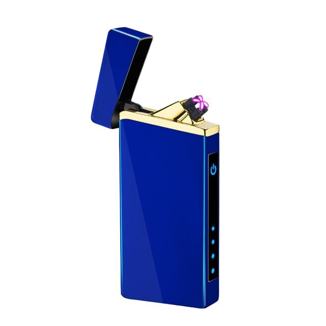 Сенсорная USB зажигалка импульсная, две дуги, индикация заряда, синяя
