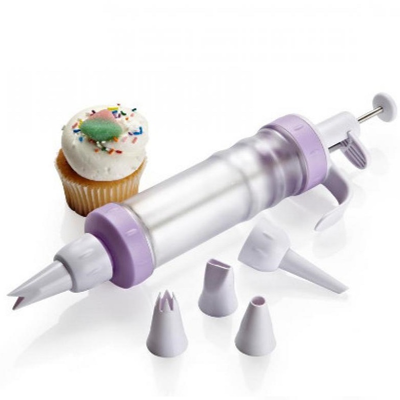 Наконечники можно легко сменить в процессе работы с кремом или глазурью. Выдвижной поршень обеспечивает равномерную подачу крема или теста.