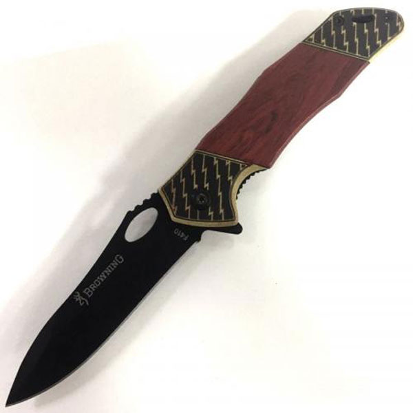 Модель ножа выполнена в сочетании трех цветов черный, красный и желтый. Хорошая эргономика рукоятки, все выемки и пазы под пальцы приятно лежат в руке. Сама рукоятка сделана из прочного пластика, который облегчает общий вес ножа и дает хорошую сцепку с ладонью. На рукоятке есть разъем под темляк.