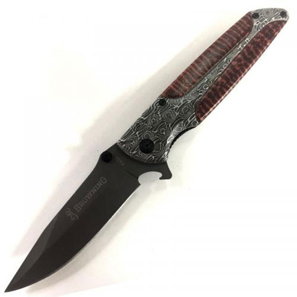 Очень удобный и надежный нож. Хорошее качество приятно порадует своего владельца. Дизайн выполнен в строгом стиле с узором белого цвета. Нож хорошо "сидит" в руке, есть выемка под указательный палец и выступ на обухе в качестве небольшого упора под большой палец руки.