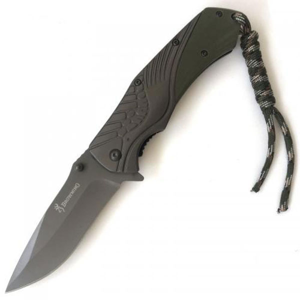 Данная модель ножа сделана в строгой серой расцветке. Продуманная эргономика рукоятки. Рукоять сделана из комбинации металла и пластика, она оснащена специальным креплением для фиксирования на кармане одежды. На конце рукоятки расположен шнурок из паракорд веревки.Открывается нож так называемым "плавником", часть клинка формирует выступ, который в сложенном виде помогает открыть нож. Также нож можно открыть шпеньками, они тоже расположены на клинке, и позволяют открывать нож левой или правой рукой. Фиксирует клинок в рабочем положении замок Liner-Lock.