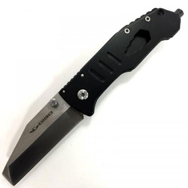 Конструкция ножа сделана из металла и пластика. Это обычный складной нож, без фиксатора положения для клинка. Особенностью этой модели является геометрия клинка. Она не стандартная, прямоугольная, и заточен клинок с одной стороны.