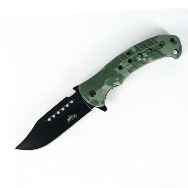 На самом клинке и рукоятке имеются отверстия, которые также уменьшают вес ножа. Данная модель открывается специальным рычагом – частью клинка, которая выпирает особым образом, потянув его на себя резким движением нож открывается. Очень легкая и удобная в использовании модель. Станет хорошим помощником в походе на природу, рыбалке или просто в повседневных бытовых делах.