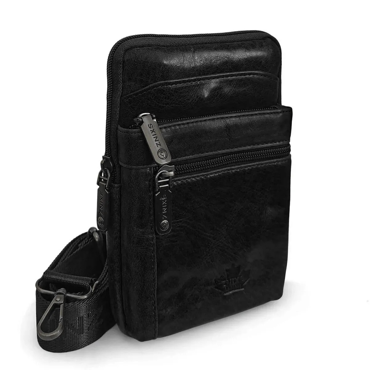 Сумка органайзер на пояс и через плечо, для кошелька, документов и телефона. Натуральная кожа, карабин, ремень Znixs 25016 черный