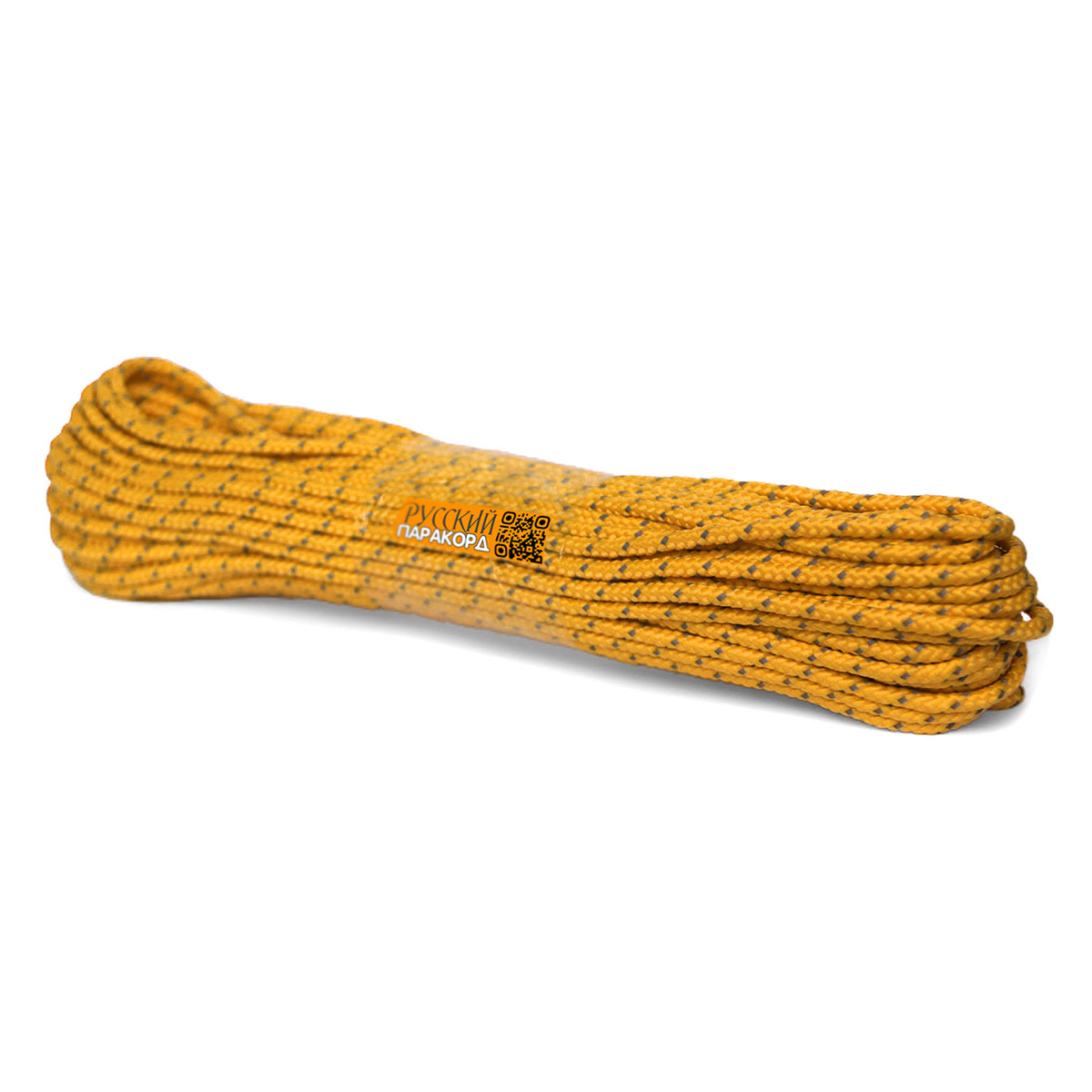 Светоотражающий шнур (светящаяся веревка, оттяжки для палатки) «Русский паракорд» желтый (3.5мм, 20м)