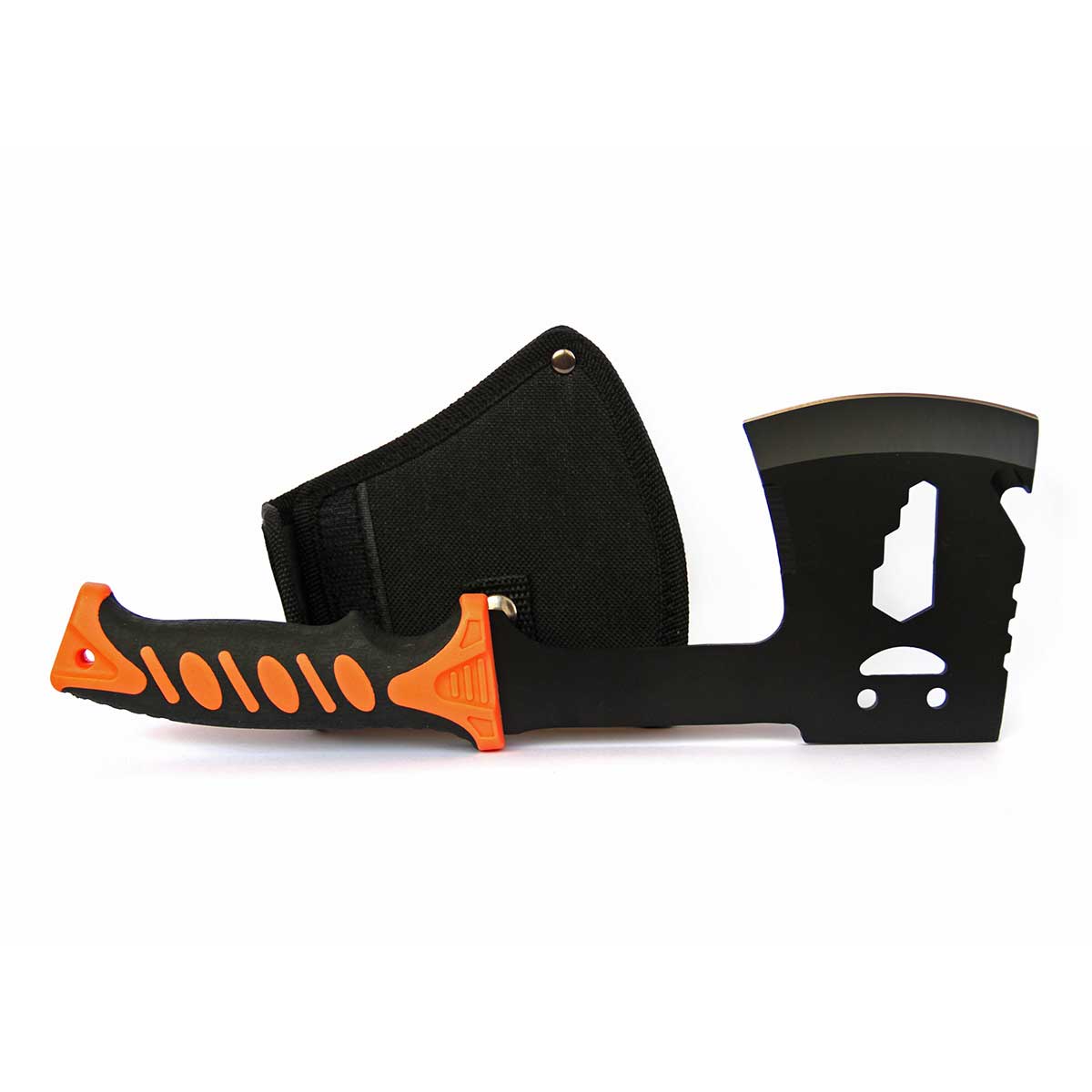 Когда вы не используете топор, вы можете хранить его в чехле, который надежнее, чем сейфы в национальном баке США. Чехол для топора сделан из специального материала, который не плесневеет. С обратной стороны футляра вы найдете крепления, которые позволят надежно удерживать топор, например, на поясе или на рюкзаке.