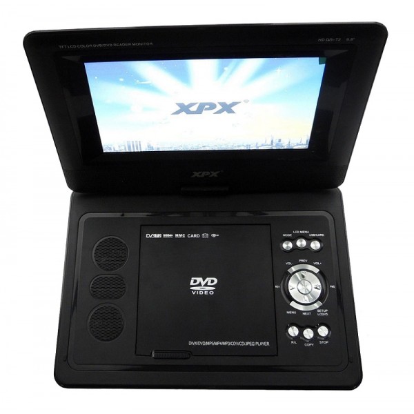 Цифровой DVD-плеер 9,8" XPX EA-9088D c FM DVB-T2 - новый портативный плеер от известного корейского производителя. Модель EA-9088D имеет небольшие размеры, поворотный экран и легкий вес, что очень удобно в поездках на дачу, путешествиях на автомобиле, самолете или поезде. Данный двд-плеер снабжен встроенным FM-модулем, а также всеми необходимыми портами для воспроизведения файлов с любого съемного носителя. Цифровой DVD-плеер XPX EA-9088D с тюнером DVB-T2 - идеальный переносной DVD-плеер для дома и путешествий.
