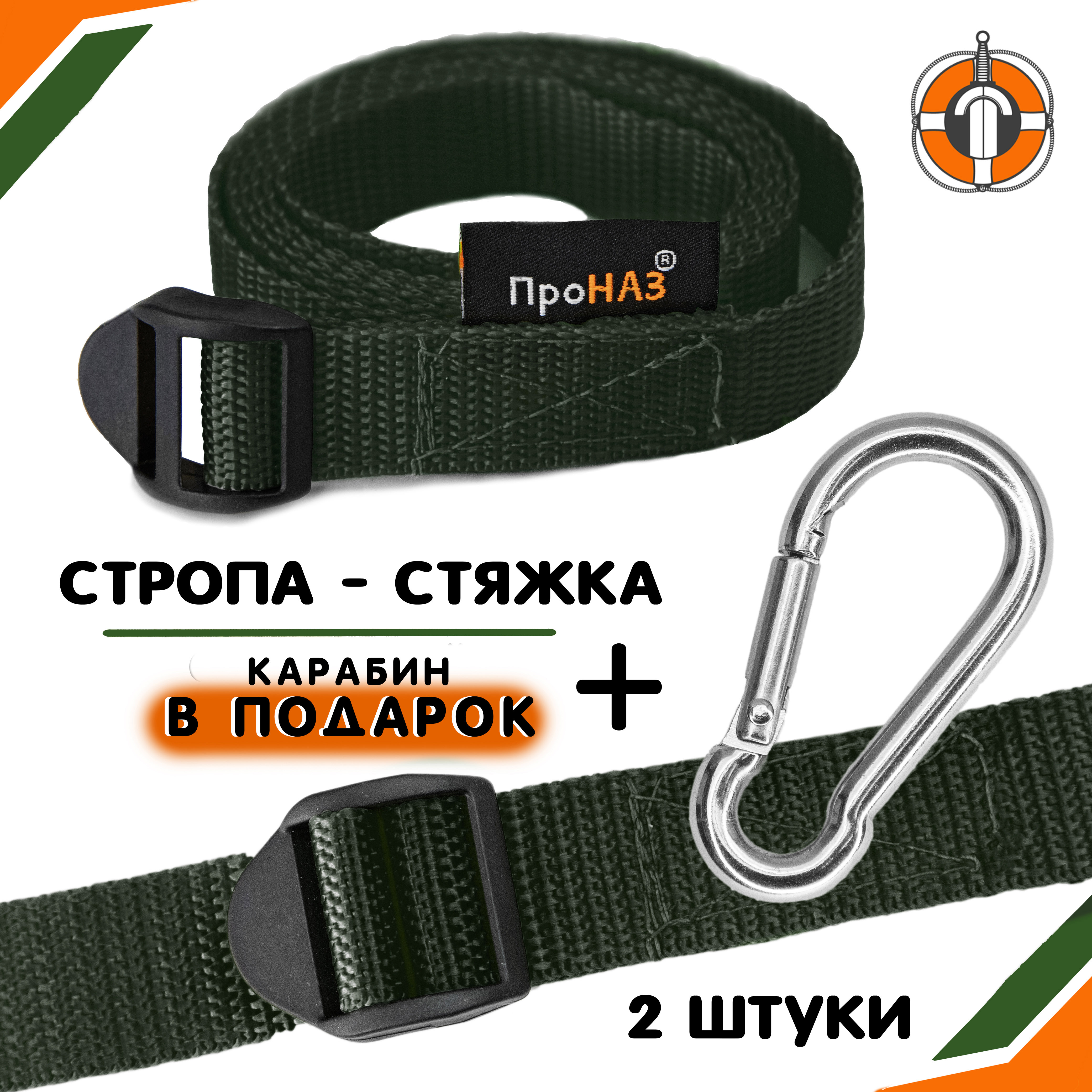 В подарок к комплекту идет пружинный карабин из нержавеющей стали. Он предназначен для быстрого и надёжного крепления тросов, верёвок, различных предметов между собой или к чему-либо, а так же подвешивания инструментов, снаряжения. Такое крепление отлично подойдёт для использования в туристических целях, различных путешествиях, походах. Карабином можно фиксировать различные элементы снаряжения, крепить туристические гамаки, сцеплять верёвки (тросы).