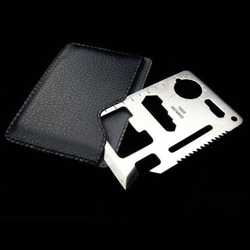 Швейцарская карта для выживания - комплект из 11 предметов. Гаечный ключ, нож, отвертка, открывалка для бутылок, консервный нож, пила. Мультитул размером с кредитную карту, хранит в своем арсенале 11 предметов.