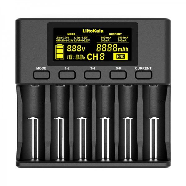 Зарядное устройство Liitokala Lii-S6 оснащено универсальными слотами с одним подвижным контактом. Благодаря этому каждый слот может подстраиваться под длину Вашего аккумулятора, что дает возможность заряжать аккумуляторы разных форм-факторов. Также зарядное устройство может работать и с различными по составу и вольтажу элементами. Каждый канал контролируется индивидуально, на экране Вы сможете посмотреть информацию по каждому заряжаемому аккумулятору отдельно.