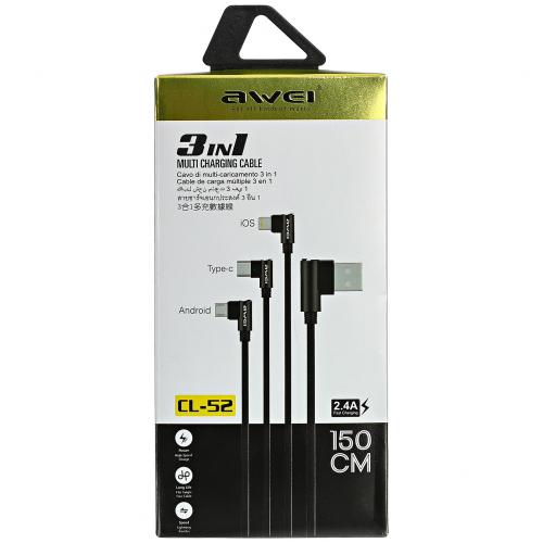 УНИВЕРСАЛЬНЫЙ КАБЕЛЬ 3 В 1 AWEI CL-52 LIGHTNING/ USB TYPE-C/ MICRO-USB
