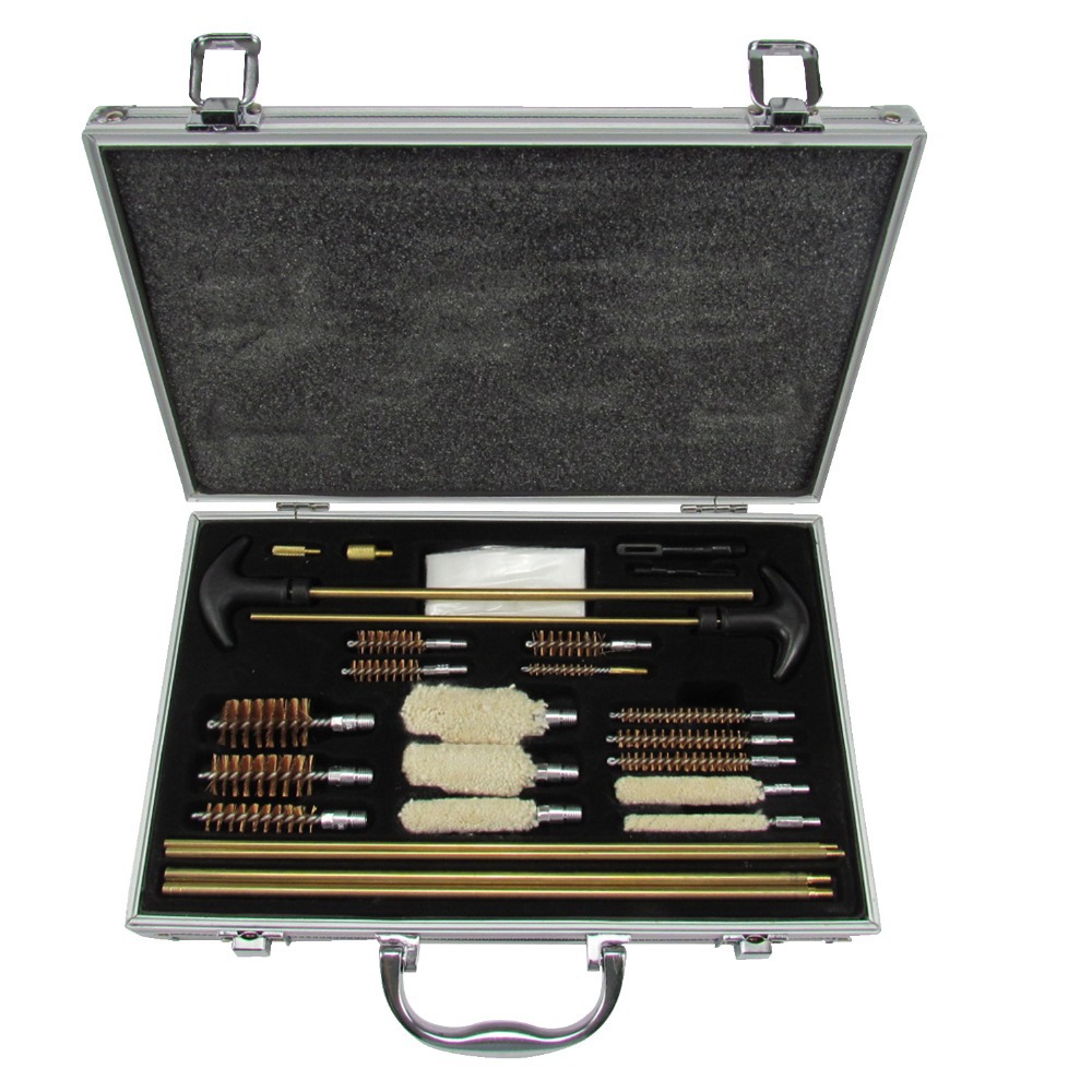 Универсальный набор для чистки оружия в прочном кейсе из алюминия подходит практически для всех калибров ружей, карабинов и пистолетов (нарезное, гладкоствольное оружие)
